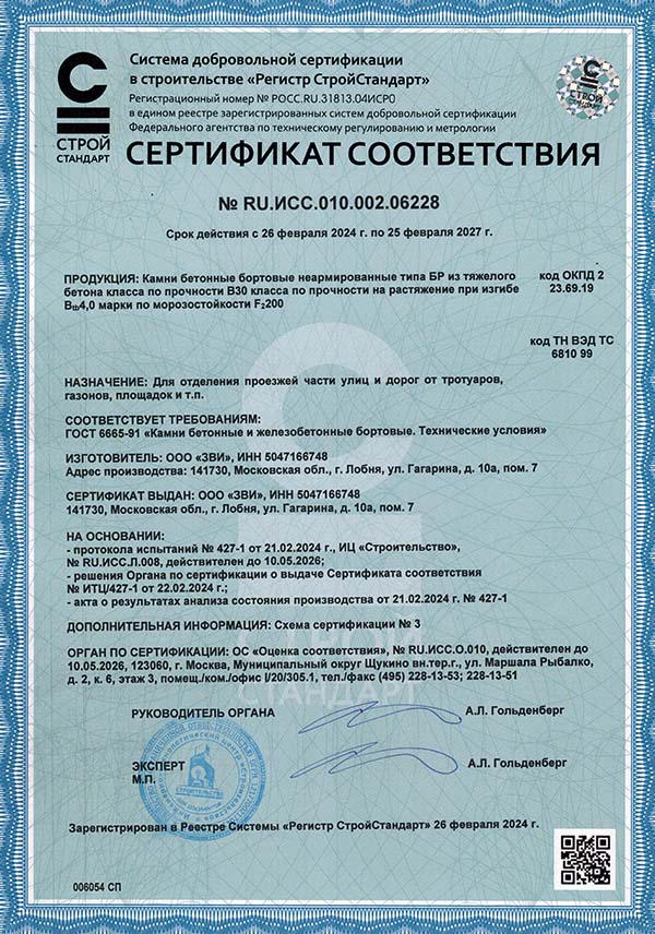 Сертификат соответствия на бордюры